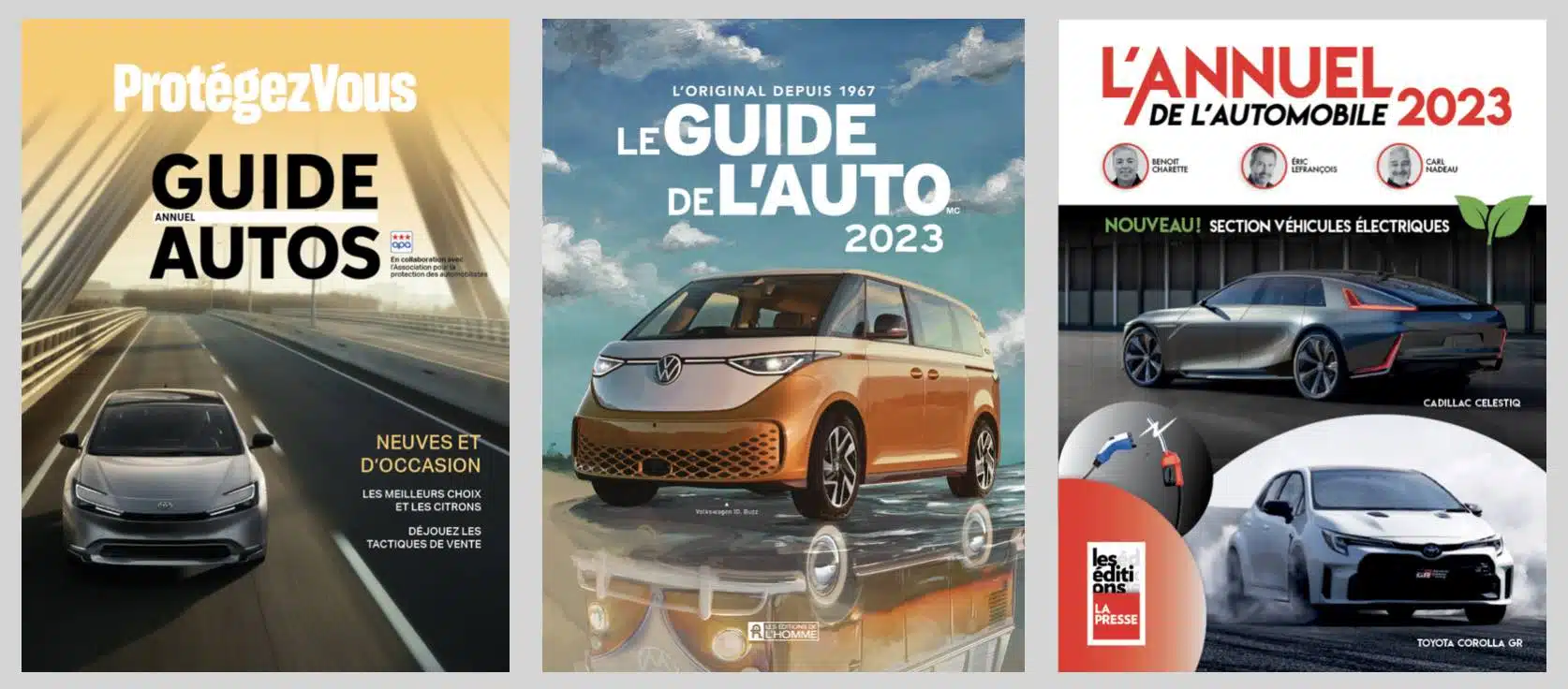 👉 Consulte des organismes qui analysent les produits de consommations et d’automobiles comme Protégez-vous, Consumers Reports, l’APA, la CAA, etc. Un guide en particulier se démarque: Le guide Autos Neuves et d’Occasion 2023. Cette publication conjointe de l’APA et de Protégez-Vous vaut vraiment l’investissement demandé. Ce guide propose près de 300 évaluations de véhicules neufs et d’occasion. Les experts de l’APA y analysent de façon détaillée la performance, la fiabilité et la sécurité de chacun.